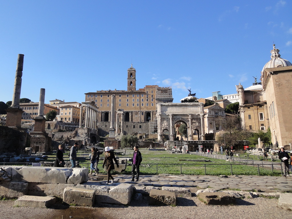 From Palatine Hill, we went to the Roman Forum. The main buildings of the forum are no longer standing. However, some smaller temples survived. We visited the Temple of Romulus (in the Forum) that was built in 4th century and explored the remains of the pillars. One particular Arch that caught my attention was the Arch of Septimus Severus (erected in 203AD).