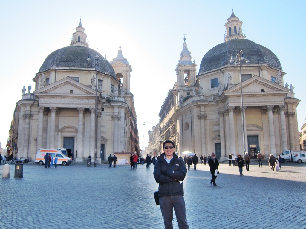 From there, we walked back to Piazza del Popolo to take some photos. We were there yesterday but it was a bit dark for photos. We saw the famous Santa Maria del Popolo, and from there we walked along Via del Corso back to the hotel.