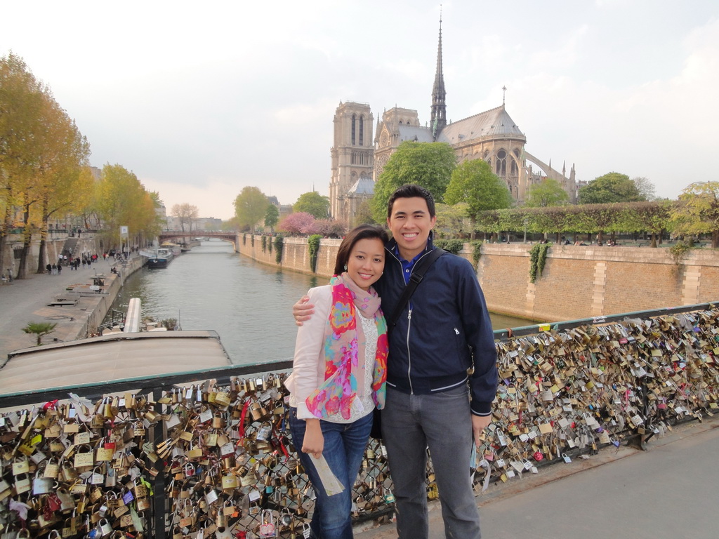 After lunch, we walked around, exploring the area. We ended up at Pont de l’Archevêché, a bridge near Notre Dame. This bridge is similar to Pont des Arts where lovers put their “love padlocks” on the bridge. We were just in time to observe a newly wed couple taking a photo there.