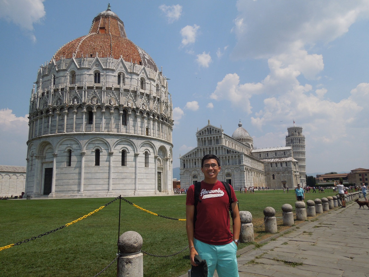 Pisa Tower is located within Piazza Del Duomo. When we arrived at the Piazza, it was packed with people. It’s Europe’s summer holiday at its peak. The heat was a real killer, 33 degrees!