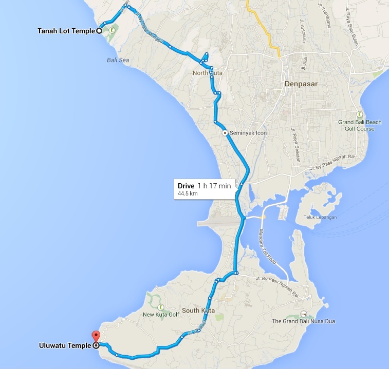 At 2PM, Antara and Andy from Nathan tours greeted us at the lobby. Today we had another half day tour to Pura Luhur Tanah Lot and Pura Luhur Uluwatu. The trip north to Tanah Lot from Seminyak took around 1 hour. Tanah Lot isn’t too far from our hotel, but narrow Bali roads and weekday macet (Indonesian: traffic jam) contributed to the slow travelling time.