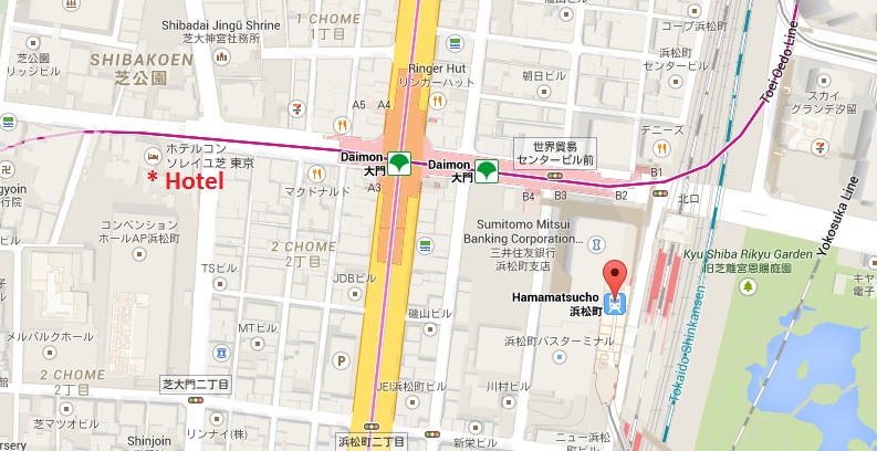 From Tokyo Station, we took the JR Yamanote train to Hamamatsucho station. We were not required to purchase any additional tickets as the Yamanote train is part of the JR Pass. At Hamamatsucho, we walked 2 blocks east to arrive at our hotel.