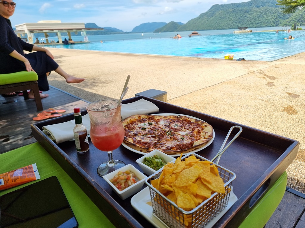 After the beach, we made our way to the swimming pool. We ordered snacks at the pool bar and enjoyed the amazing view.