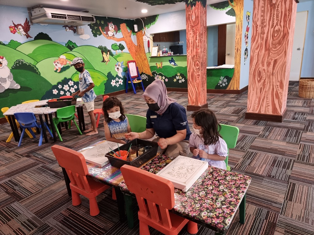 The hotel has a daily schedule of kids activities at the recreation centre. We decided to give it a try. There was a batik making session this afternoon, and I thought it sounded perfect for the kids.