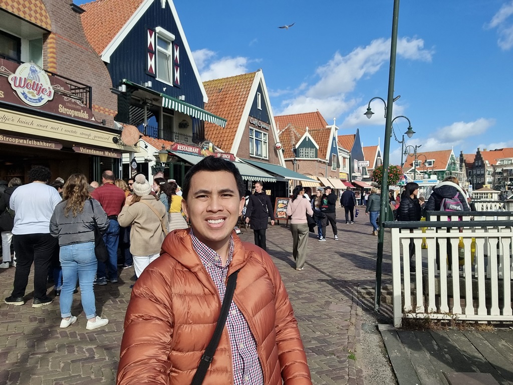 After the shoe factory, we walked to the jetty and boarded a ferry to Volendam. The ferry ride was pleasant. There weren’t too many people on the tour so there were ample space to move around. I spent some time enjoying the breeze at the top part of the ferry before going to the cafe for a nice cup of hot chocolate and some chips.