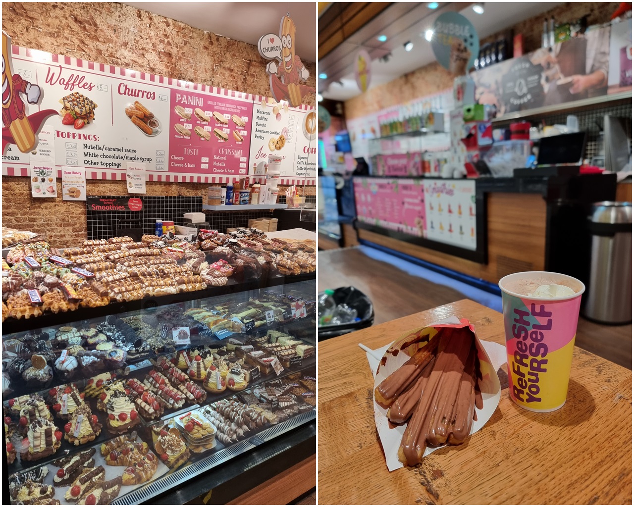 There were 2 types of pancakes to choose from: Dutch traditional, or American. Since I am in Amsterdam, I decided to try the Dutch pancake. It’s flat and stretches throughout the plate. I had the one with chocolates and banana. It tasted okay. I guess I still preferred the American pancake with maple syrup.