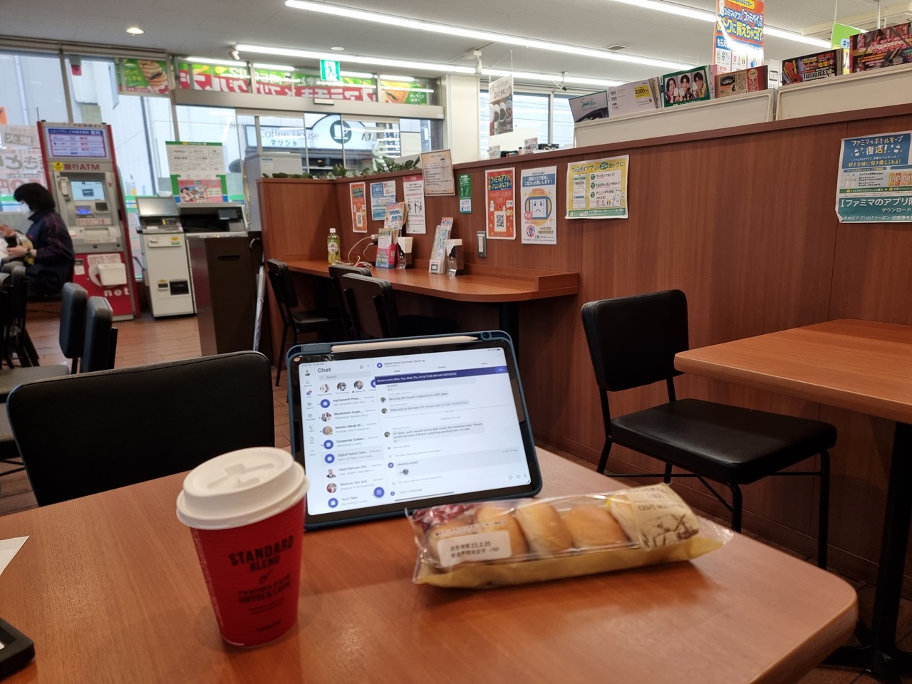 I started the morning by having a simple coffee and pastry at Family Mart while setting up the wifi unit.