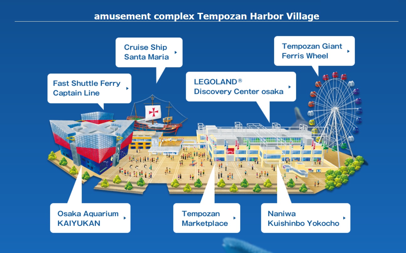 Tempozan is a small mall next to Kaiyukan that has lots of eateries and gift shops. There are other attractions there too such as a Legoland Discovery Center and a giant Ferris Wheel (refer diagram above).