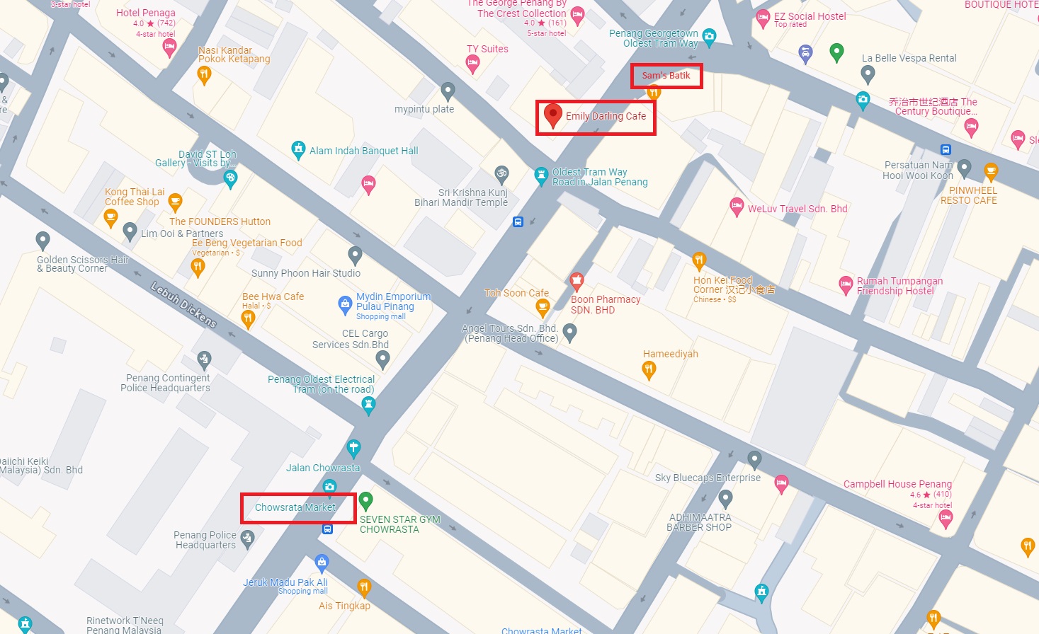 We started the day by visiting Sam’s batik. It is one of the well known batik stores in town. The location was good too as it was in central Georgetown and within walking distance to Lebuh Campbell.