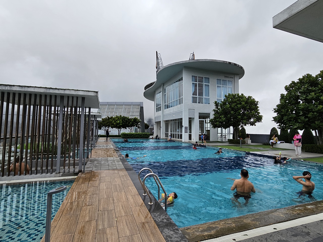 In the evening, the kids went swimming at the heated pool. With the misty cool weather, it was quite nice.