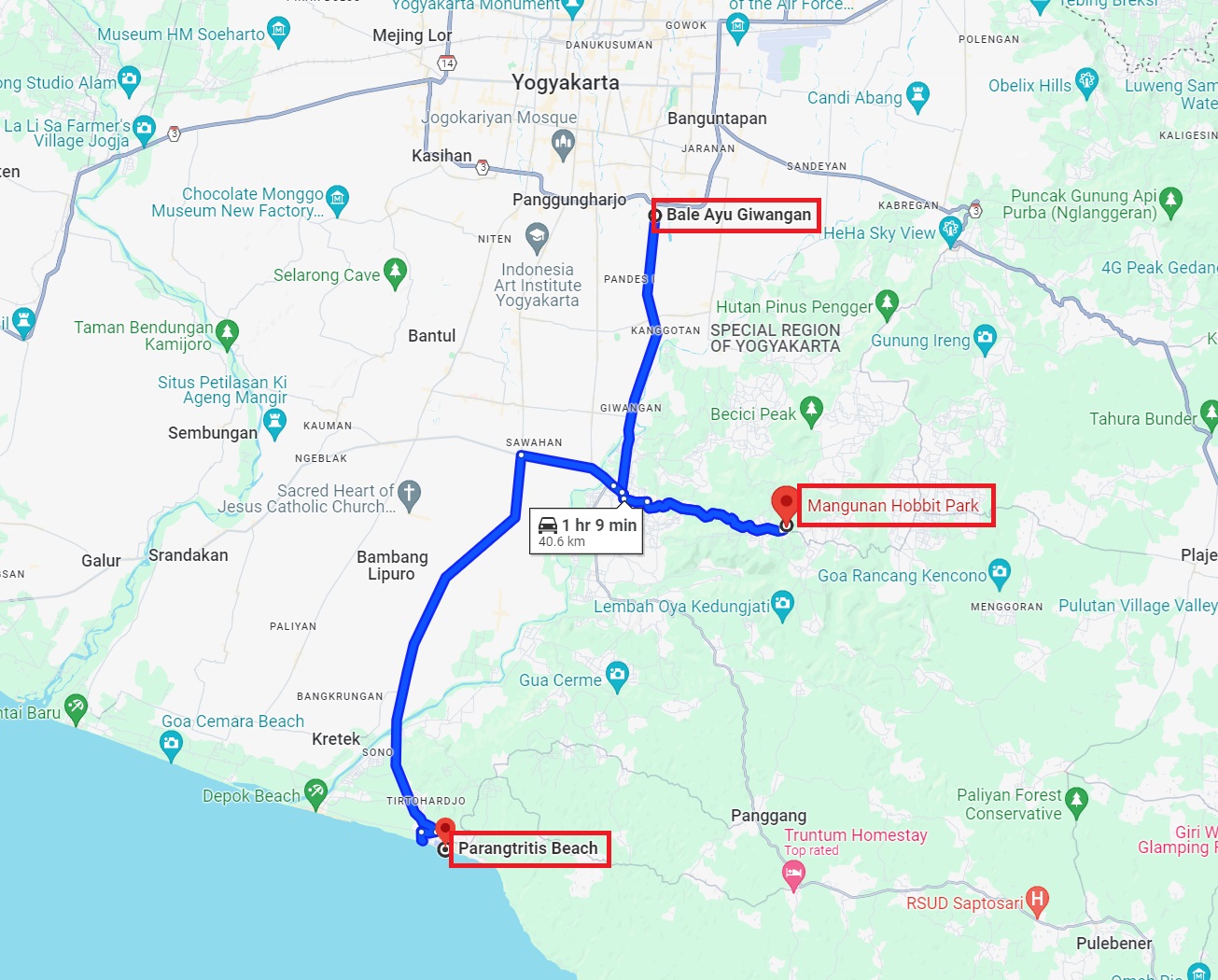 From Bale Ayu, we headed south. The plan for the afternoon is to visit Pantai Parangtritis, with a short detour at Hobbit Park.