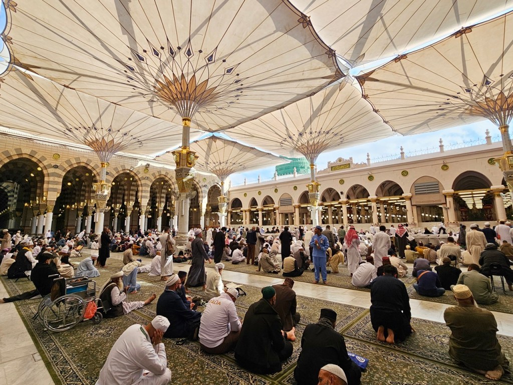 For zohur prayers, we managed to get a seat outside of rawdah. After going to the mosque museum earlier, I realised this section is the original section from the prophet’s time.