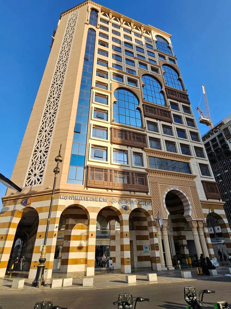 In the afternoon, I went to explore the buildings near my hotel. I wanted to have a look at the Uthman bin Affan hotel.