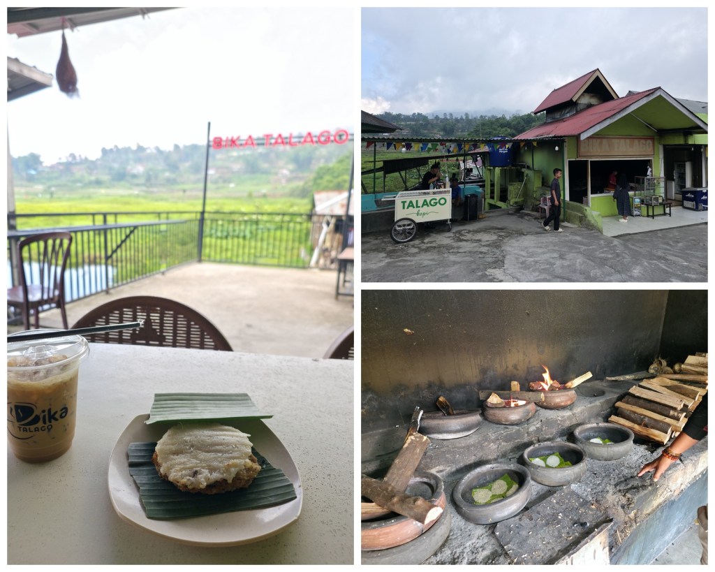 Further along, we stopped by Warung Bika Talago in Tanah Datar. It is a cafe selling the famous traditional cake from West Sumatra. There were 2 types of cakes: a brown cake, and a coconut cake. The cafe had a nice view of the green landscape.