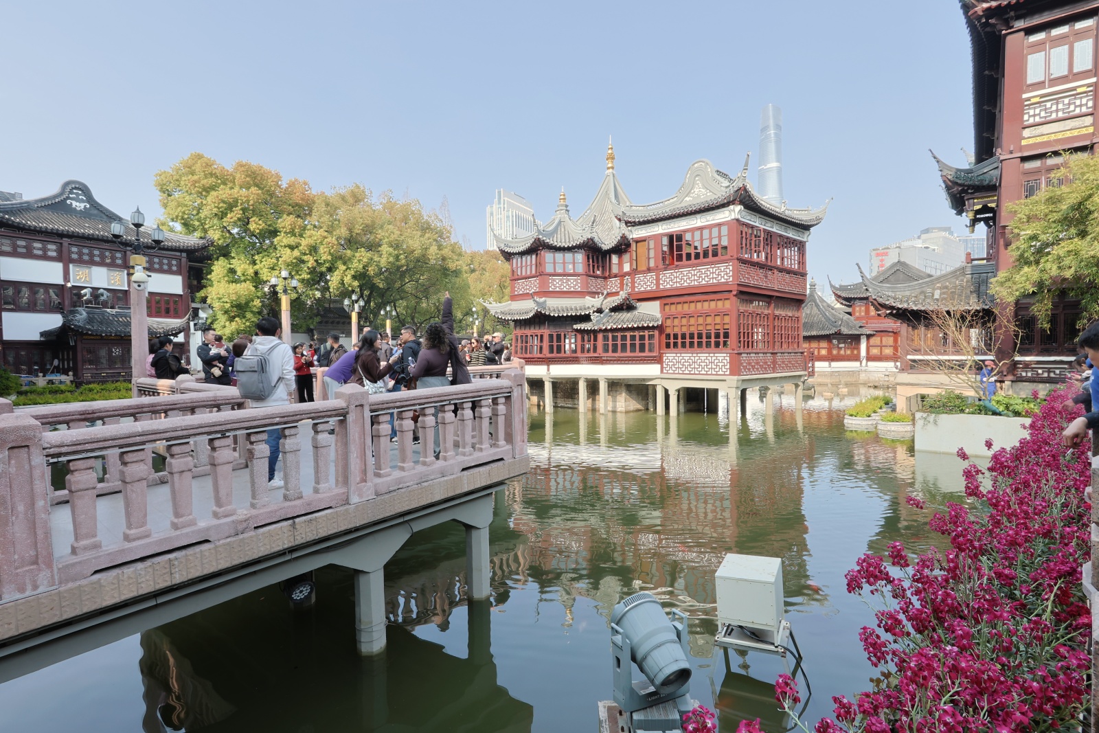 We went through the building towards the promenade. There was a nice garden overlooking the bund from there.